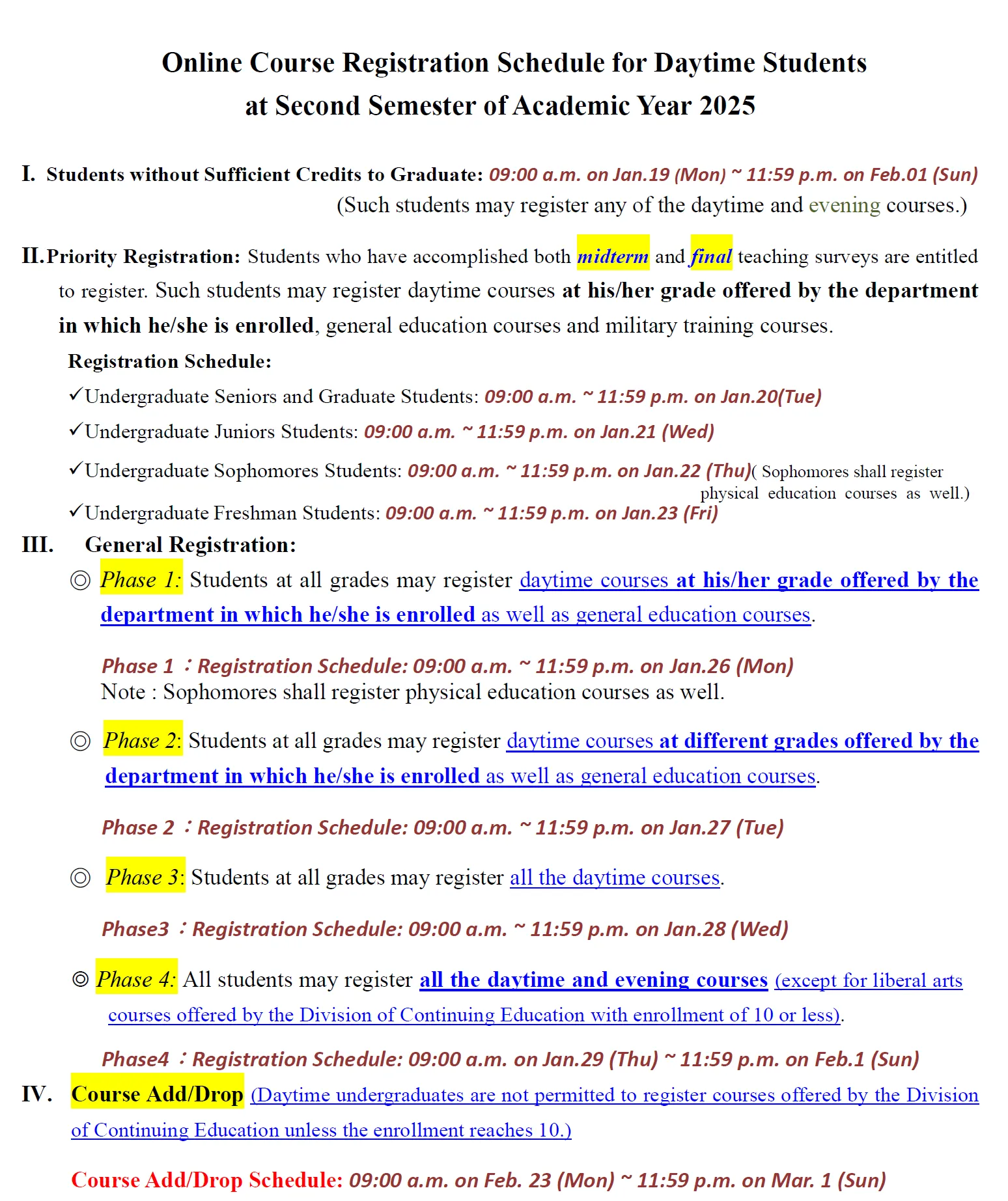 Online Course Registration Schedule for Daytime Students at Second Semester of Academic Year 2025