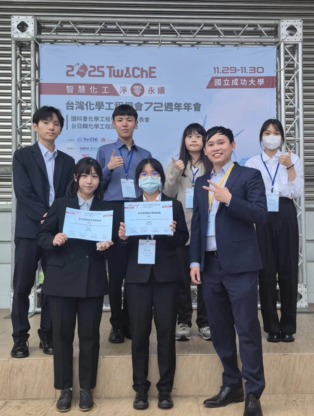 臺灣化工年會(TwIChE)暨台日韓化學工程國際研討會,化工系卓家榮師生團隊從全台940篇碩博士論文競賽中脫穎而出,再獲佳作榮譽。